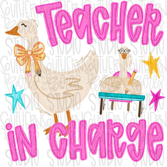 Teacher goose in charge png, bright png, preppy png, girly png, spring png, trendy png, whimsy png, Womens png, Kids png, later gator png
