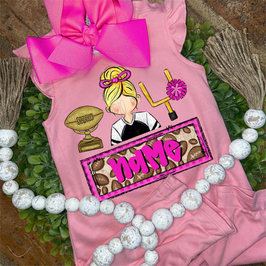 football trio with name patch | trophy red head girl goal post | Sublimation Design | Digital Download | Women’s, Kids Shirt PNG