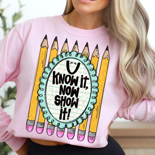 U know it now show it | school | testing | Sublimation Design | Digital Download | Women’s, Kids Shirt PNG