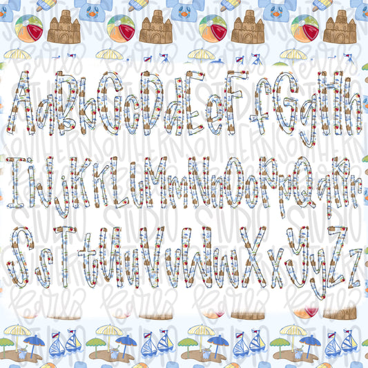 Jubilee Alpha Set boy | summer alpha, beach alpha, striped alpha, gingham alpha | PNG Font | Sublimation Design | Digital Download