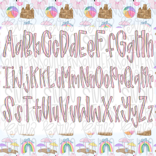Jubilee Alpha Set Girl | summer alpha, beach alpha, striped alpha, gingham alpha | PNG Font | Sublimation Design | Digital Download